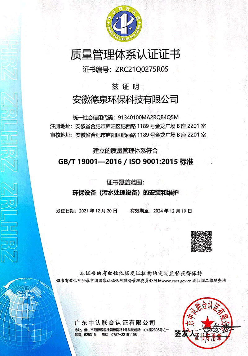 安徽德泉環(huán)保科技有限公司致力于廢水、廢氣、固廢技術(shù)處理研發(fā)、設(shè)計(jì)、施工及運(yùn)營(yíng)管理,從事環(huán)保設(shè)備及設(shè)施的制造和銷(xiāo)售,為環(huán)保項(xiàng)目系統(tǒng)提供專業(yè)的技術(shù)咨詢和服務(wù)。是一家集建筑勞務(wù)分包,工程總承包(EPC)、項(xiàng)目投資(BOT/PPP)、運(yùn)營(yíng)管理(O&M)于一體的綜合性新型高科技企業(yè)。